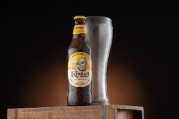 - Color correction: Warm tones were adjusted to emphasize the beer’s golden hue and the bottle’s texture.